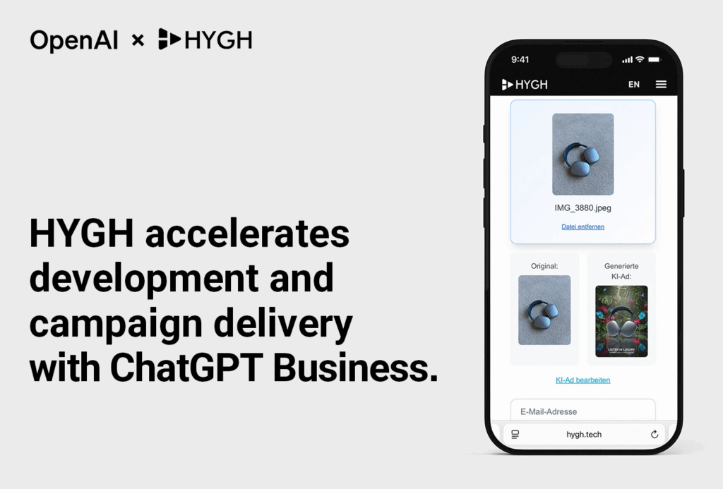 OpenAI stellt HYGH als offiziellen Business-Case vor: Als eines der ersten deutschen Unternehmen haben wir ChatGPT Business aktiv in alle Bereiche integriert. Seit der Implementierung